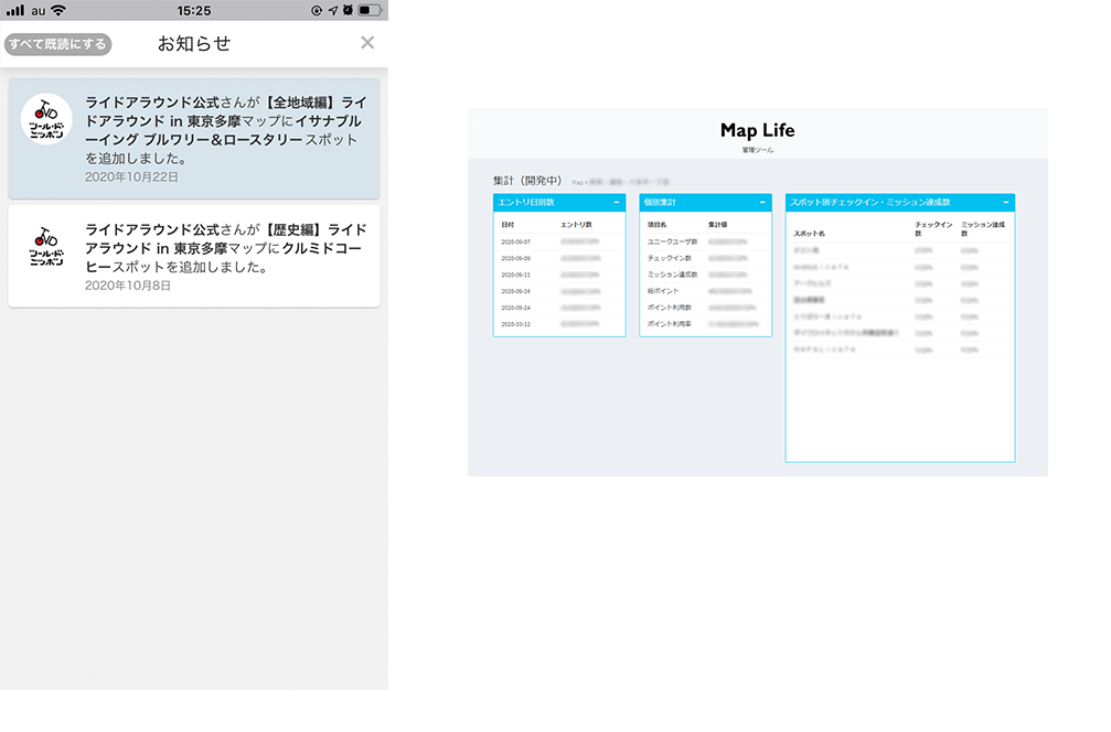 お知らせ機能を利用すれば、イベントやお祭り情報をマップの参加者全員にPUSH通知で配信することも可能です。